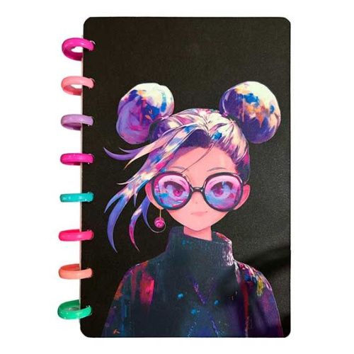 Записная книжка А5 100л. КОКОС "Cosmo girl"пластик.обл.,на кольцах,выб.лак,клетка