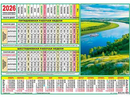 Календарь-табель настол. ЛИС 2026г. "Природа. Великая река"мел.бум.,29,7*21см@