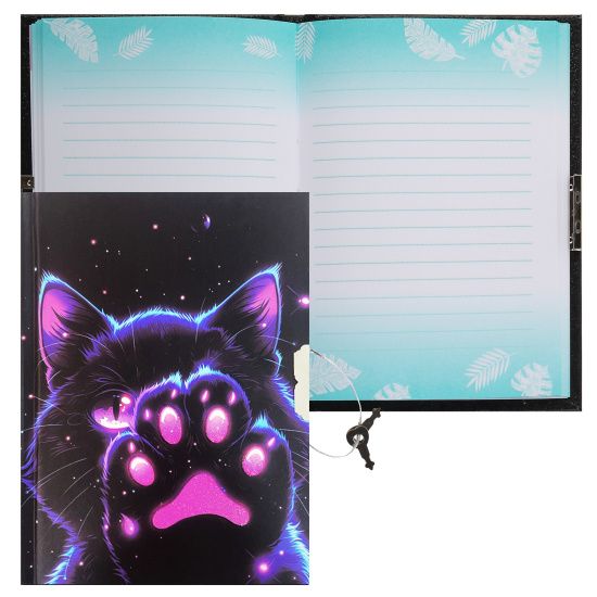 Записная книжка А6 56л. КОКОС "Cosmo Cat" тв.обл.,мат.лам.,блёстки,замочек,лин.