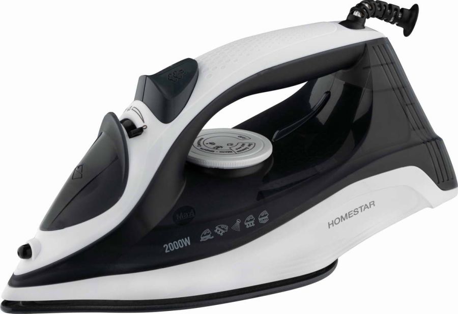 Утюг 2000Вт керамическая подошва, вертикальное отпаривание, очистка от накипи, бело-черный Homestar
