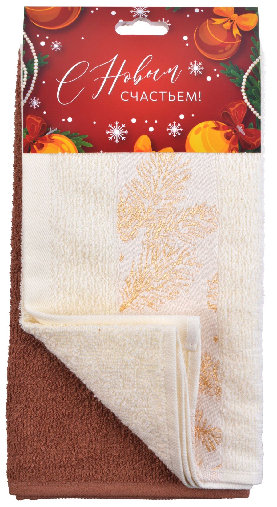 Набор полотенец 2шт Шишки (коричневый+сливовый) на хангере
