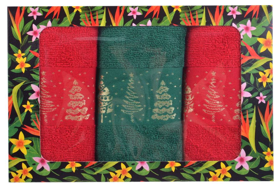 Набор полотенец 3шт Елки 30*60см в под. коробке (2кр+1зел)