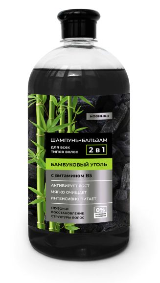 Шампунь+Бальзам для волос 1л 2в1 Бамбуковый уголь "Rain" (12)