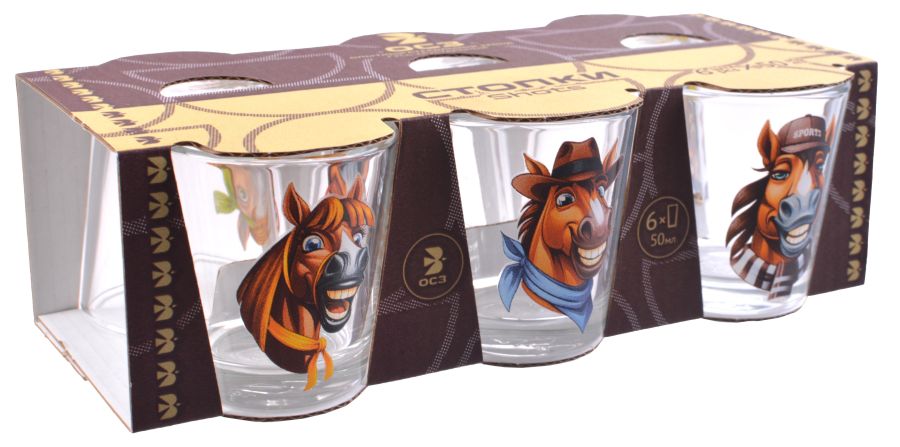 Набор стопок 6шт 50мл стекло "Крейзи лошадки" (18)@