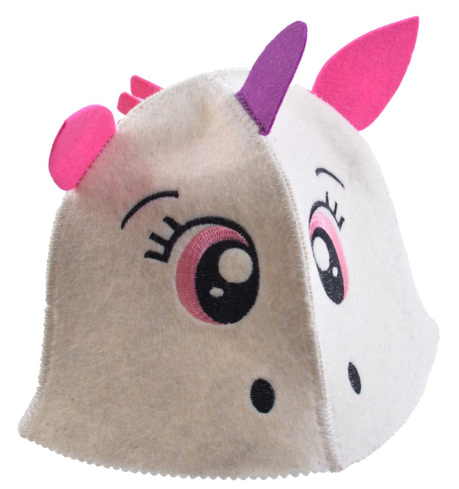Шапка для бани войлок малая "Единорожка 3D" белая Символ года 2026