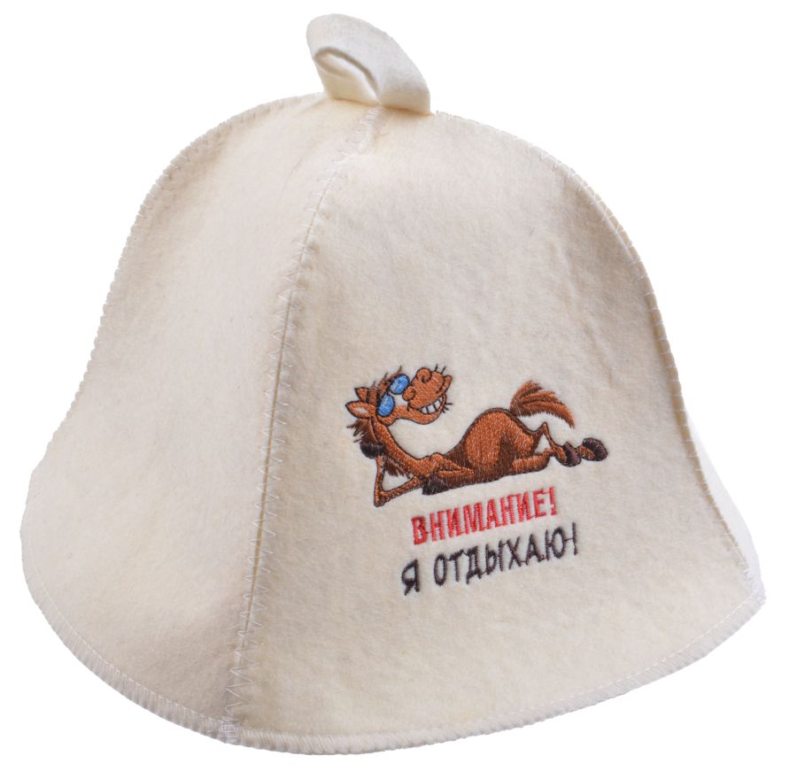 Шапка для бани войлок "Внимание! Я отдыхаю!" белая Символ года 2026