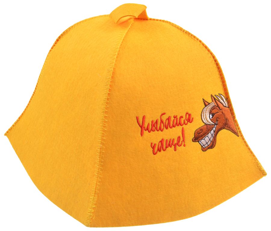 Шапка для бани экофетр "Улыбайся чаще!" желтая Символ года 2026
