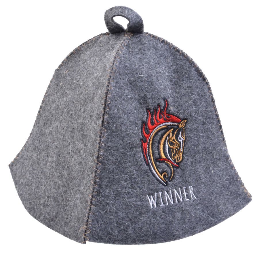 Шапка для бани полушерсть "WINNER" серая Символ года 2026