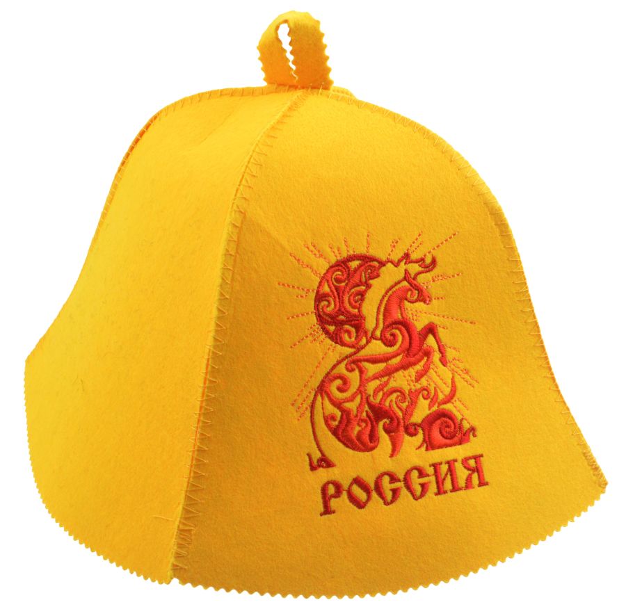 Шапка для бани экофетр "РОССИЯ" желтая Символ года 2026