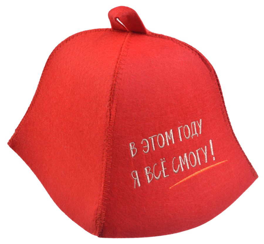 Шапка для бани экофетр "В этом году я все смогу!" красная