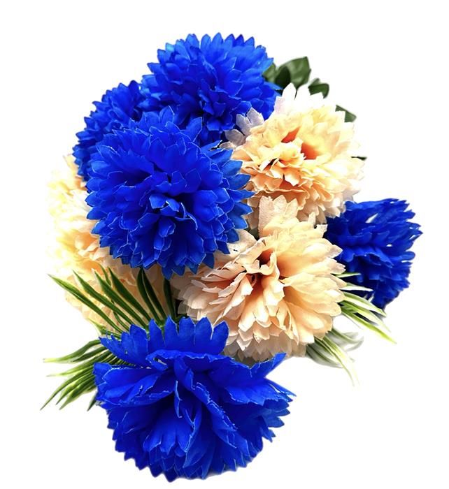 Цветы искуственные Букет Гвоздика искусственная 9гол. 51см 2цвета синий+персиковый 24-GV9-1 @