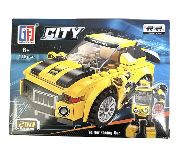 Конструктор City 2в1 "Трансформер" желтая спортивная машина 118дет. 21*15,5 коробка 123-442