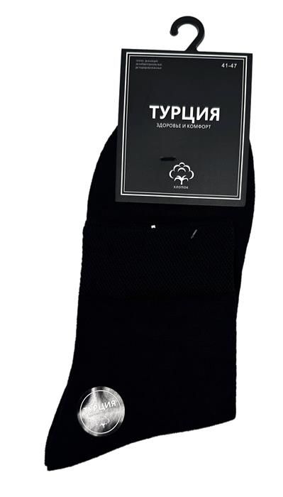 Носки мужские 41-47р (88% хлопок, 10% полиамид, 2% лайкра) черные "Турция", A840-22B