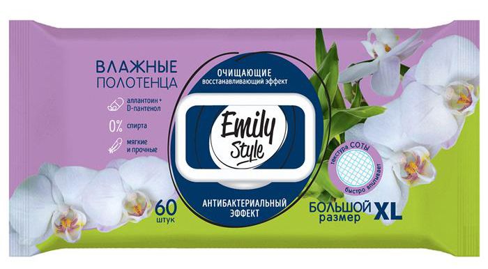 Влажные полотенца 60шт Emily Style Для всей семьи Антибактер.XL размер с крышкой