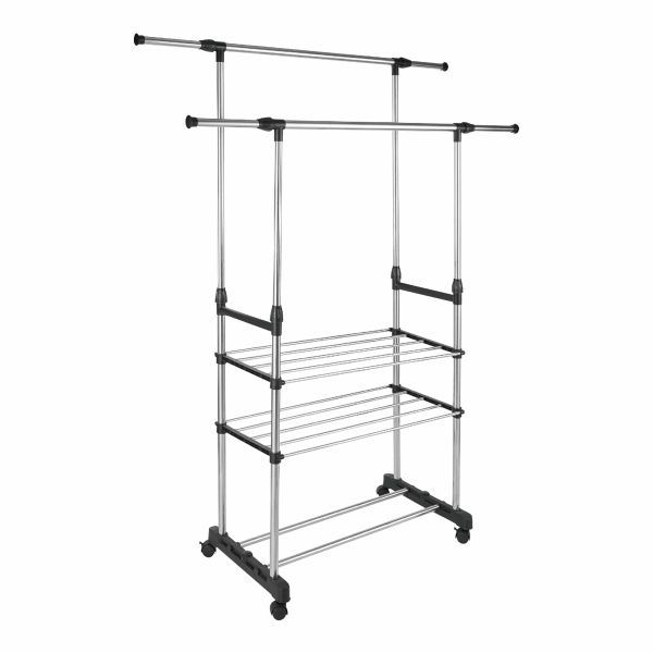 Вешалка напольная 2 перекладины, 2 полки 80/150*43*90/160 раздвижная, на колесах
