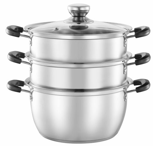 Мантоварка нерж. 13л (общий) (d24см), 3 секции (2 сетки) ст.крышка, пласт.ручки, индукция "SAKURA"