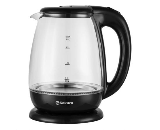 Чайник эл. 1,8л 1800Вт стекло подсветка, автомат.отключение черный"SAKURA"