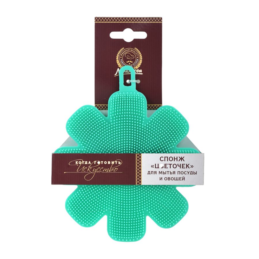 Скребок-щетка для мытья посуды (спонж) силикон 14*12см "Marmiton "Цветочек" цвет микс (20)