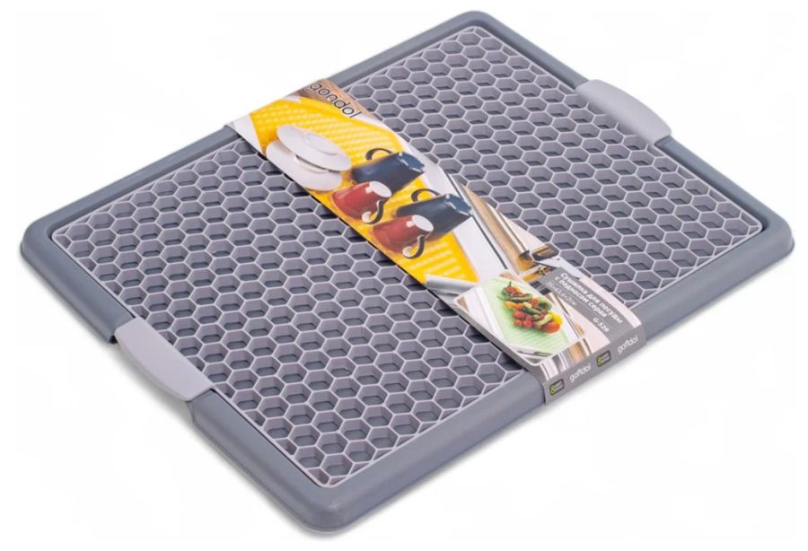 Сушилка для посуды пласт. 436*350*20мм, крупные ячейки, съемная решетка "GONDOL" серая (12)