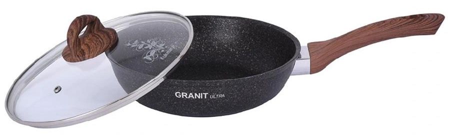 Сковорода ал. 240мм, ст. крышка бакелит. ручка под дерево а/п "KUKMARA "Granit ultra" (original)(4)