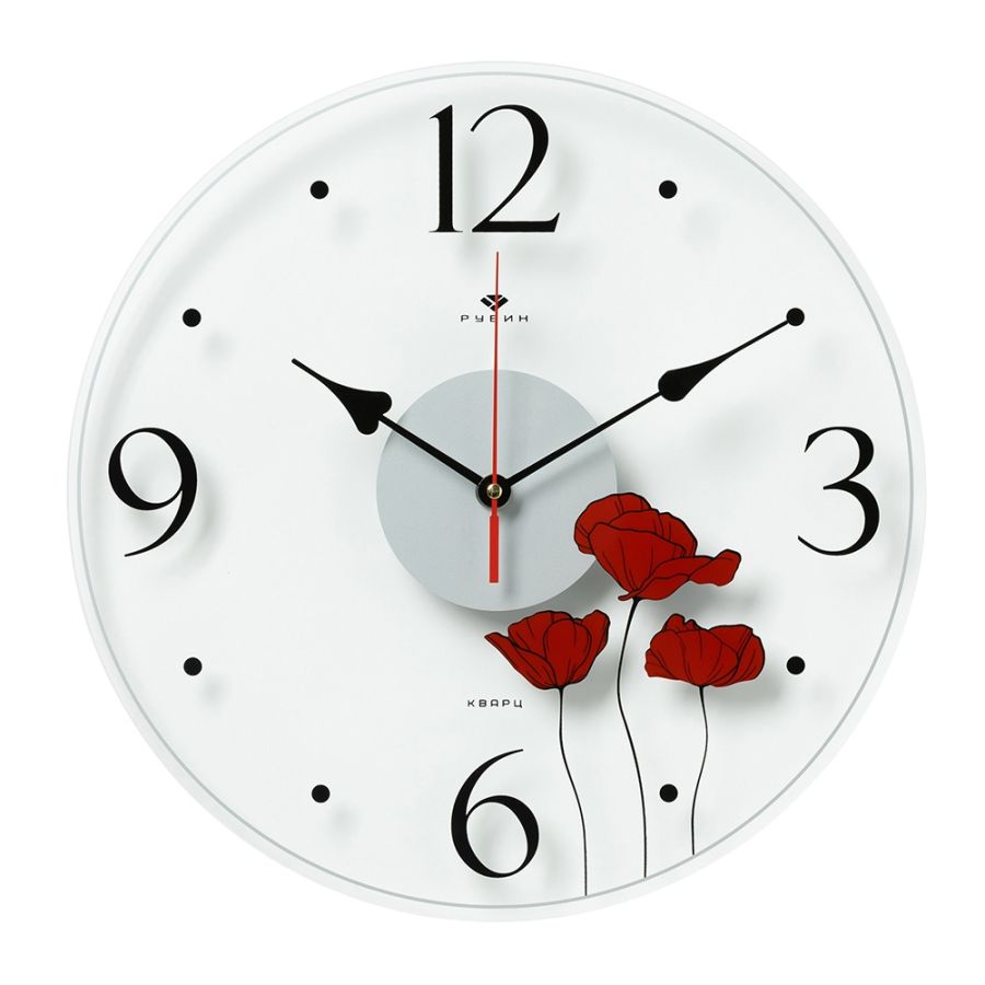 Часы настенные 34см, прозрачные, открытая стрелка "Маки"