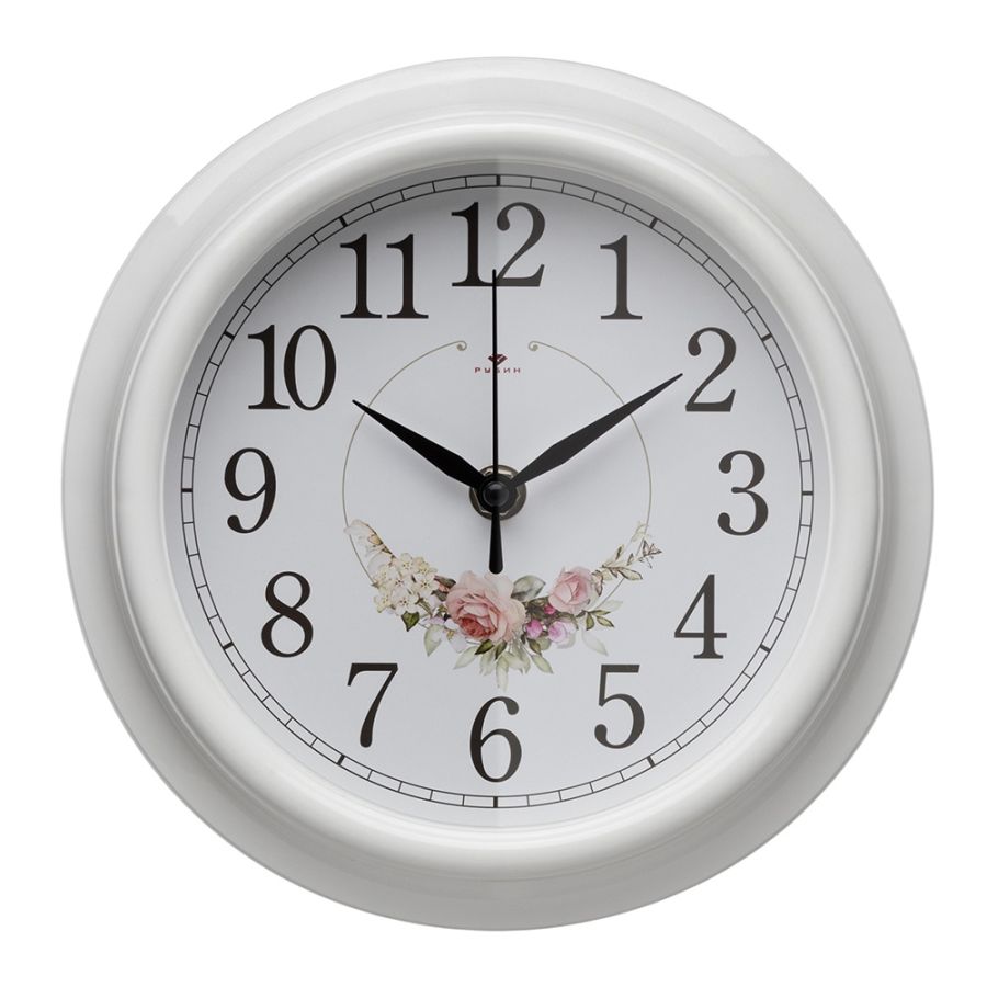 Часы настенные 21см, круг, корпус белый "Венок из роз" "Рубин"