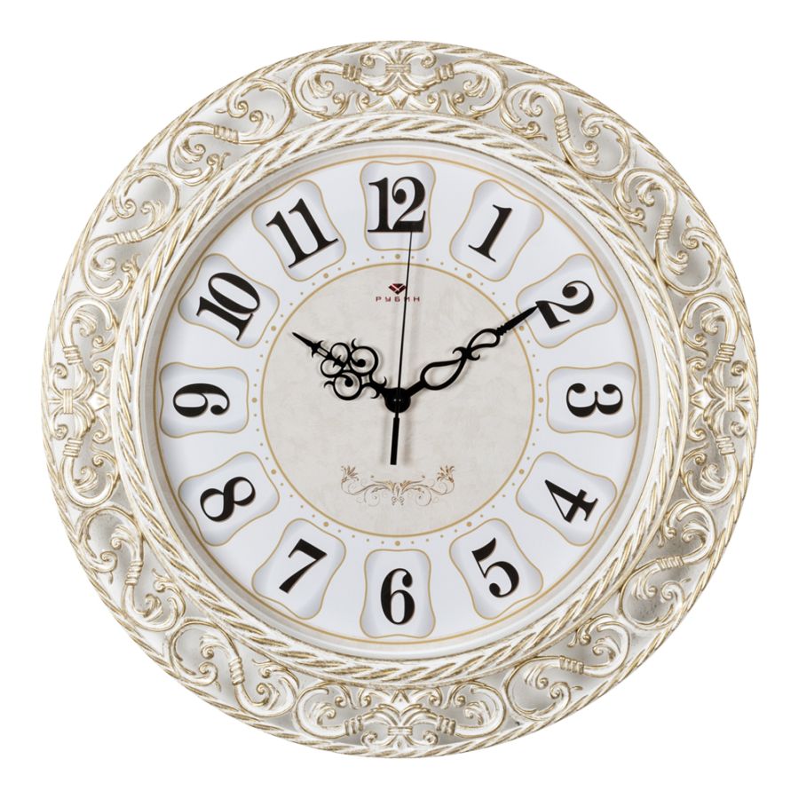 Часы настенные 39,5см, круг,с узором, корпус белый с золотом "Классика"
