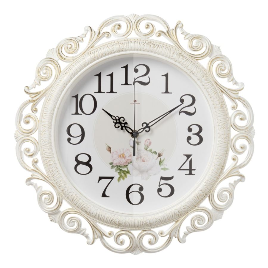 Часы настенные 40,5см, круг,ажурные, корпус белый с золотом "Нежные пионы" "Рубин"