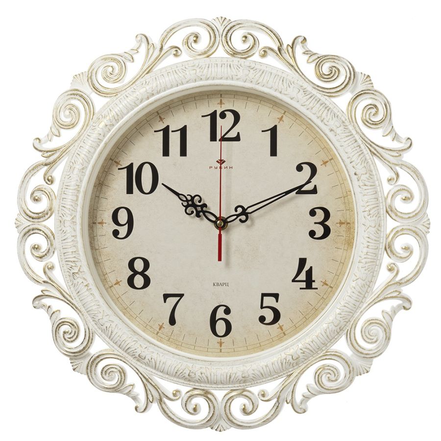Часы настенные 40,5см, круг,ажурные, корпус белый с золотом "Классика"
