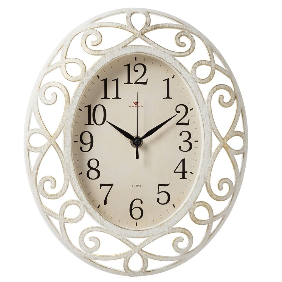 Часы настенные 31*26см, овал, корпус белый с золотом "Классика""Рубин"