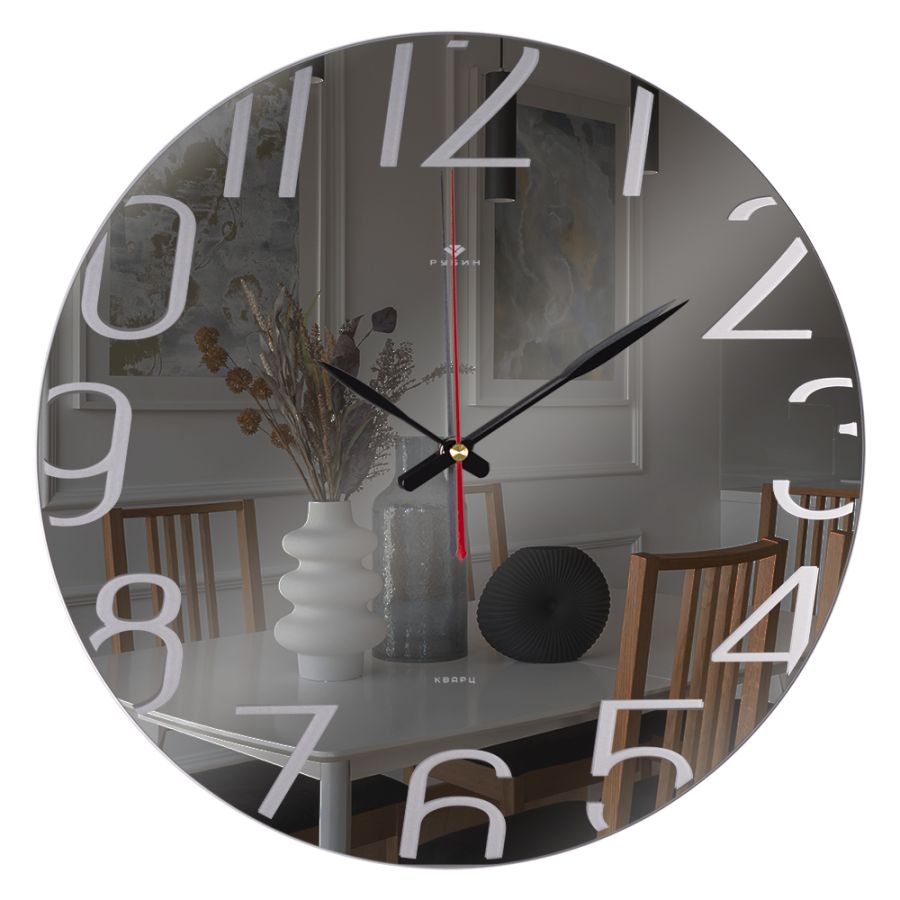 Часы настенные стекло 39см, зеркало, матовое покрытие, открытая стрелка "Цифры" Рубин