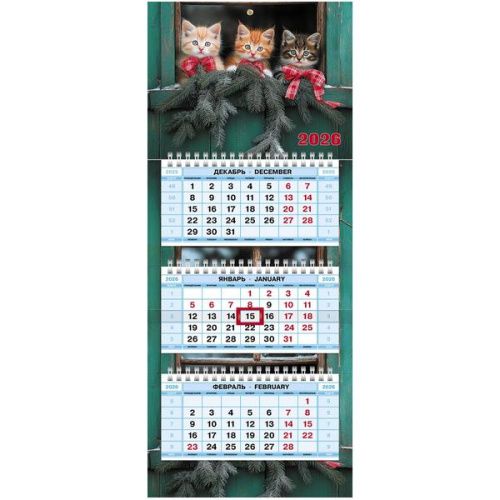 Календарь кварт. 2026г.ХАТ Мини-3 Пушистая радость 3 блока с бегун. 19,5*47см 34423