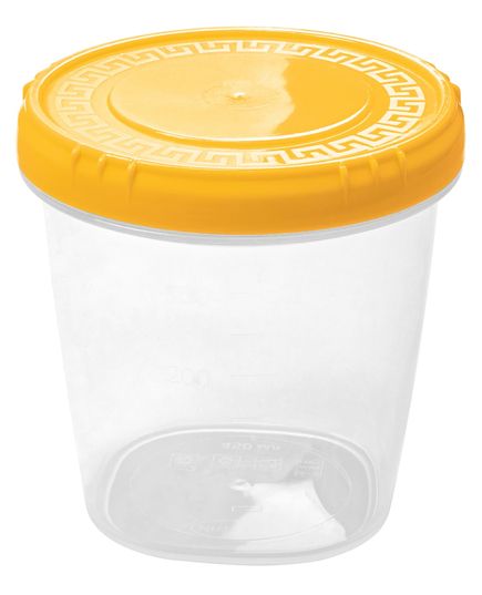 Емкость (банка) пласт. 0,45л (95*95*95мм), круглая, закручивающаяся крышка желтая (60)