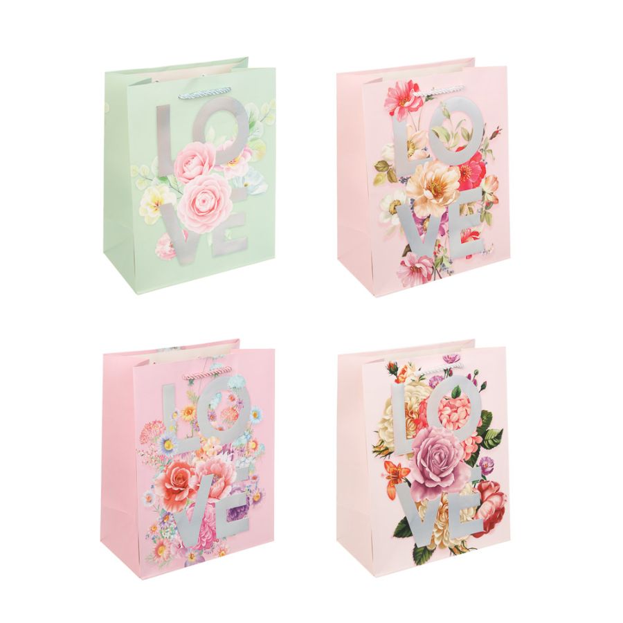 Пакет (сумка) подарочный 18*23*10см, бумажный, Fntastic 4 дизайна, цветы