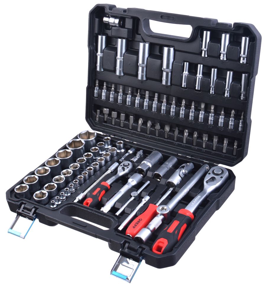 Набор инструментов 94пр (головки, биты, трещотки, рукоятка, карданы, адаптеры) в кейсе "GREPP"