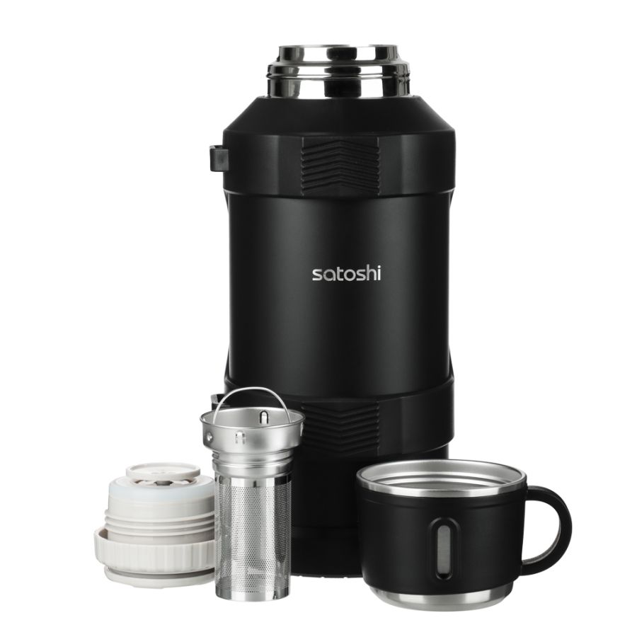 Термос нерж. 3л, крышка-чашка, пробка с кнопкой, нерж. сито, ремешок, складная ручка "SATOSHI "Акка"