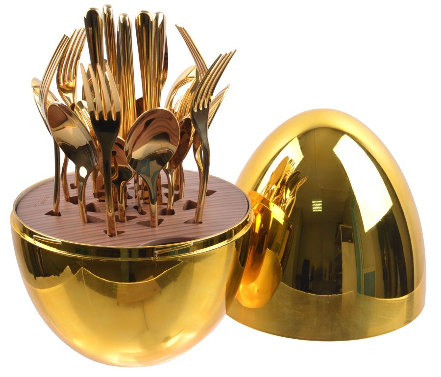 Набор столовых приборов 27пр нерж.золото, на подставке