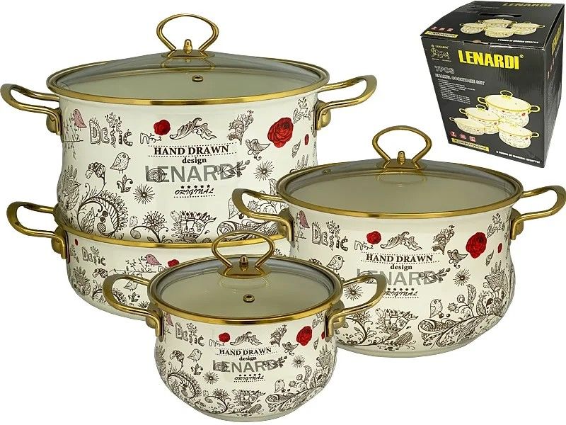 Набор кастрюль эм. 7пр Птичий дворик (2,2л,3,0л,5,0л, кастрюля без крышки 2,2л)