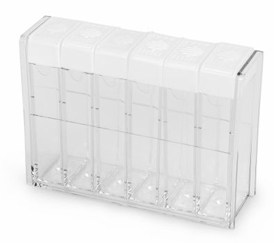 Набор для специй пласт. 7пр (170*50*120мм), 6 емкостей и подставка, прозрачные