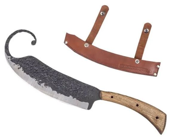 Нож-топорик (гиймякеш) 43см, кованый, ручка из ясеня, кожаный чехол "Султан"
