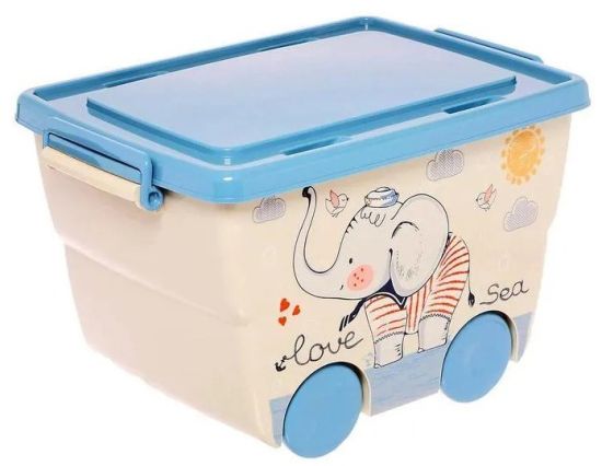 Ящик для игрушек пласт. 23л (450*310*260мм), на колесиках, пласт. крышка "ДЕКО "Слоник"