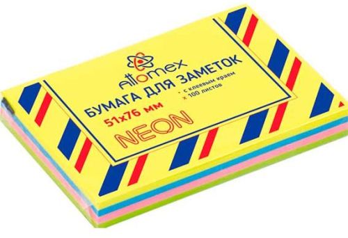 Клейкая бумага для заметок 51*76мм ATTOMEX 100л. неон