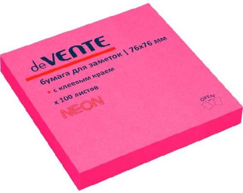 Клейкая бумага для заметок 76*76мм deVENTE 100л. неон малиновая