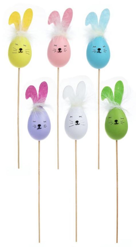 Декор (топпер) пасхальный в виде яиц на палочке, пласт., "Заяц"