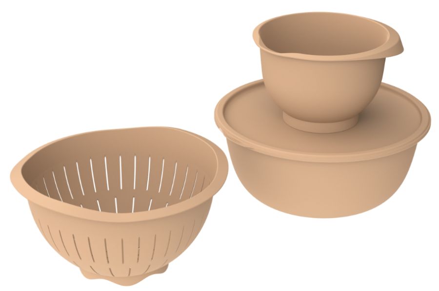 Набор кухонный пласт. 3пр (миска с крышкой 5,3л; миска 2,1л; дуршлаг 4л) цвет какао