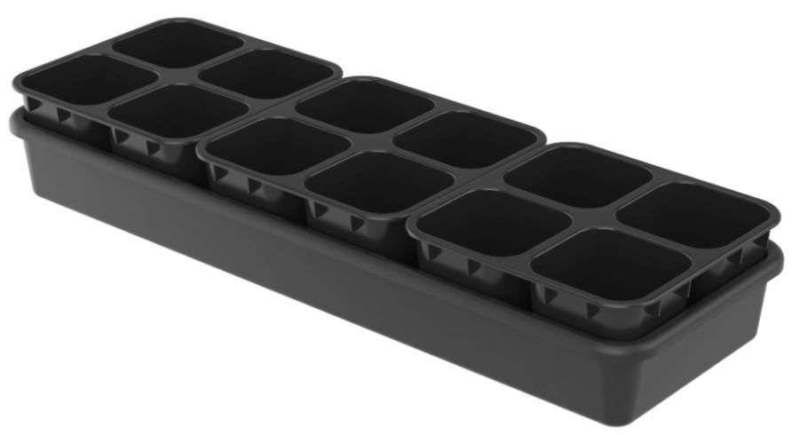 Набор для рассады пласт. 16пр (650*235*100мм), 3 кассеты по 0,6л 4 ячейки, вкладыши 12шт, поддон 9л
