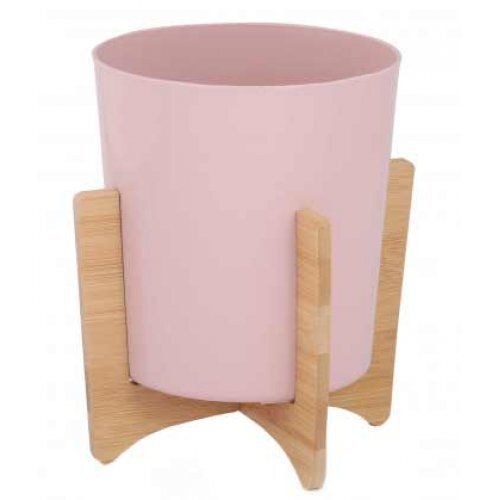 Кашпо пласт. 1,8л (170*170*185мм), бамбук подставка "Алессия" розовое (15)
