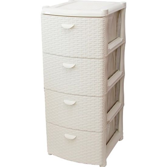 Комод пласт. 4-х секционный (405*505*960мм) "Ротанг" белый