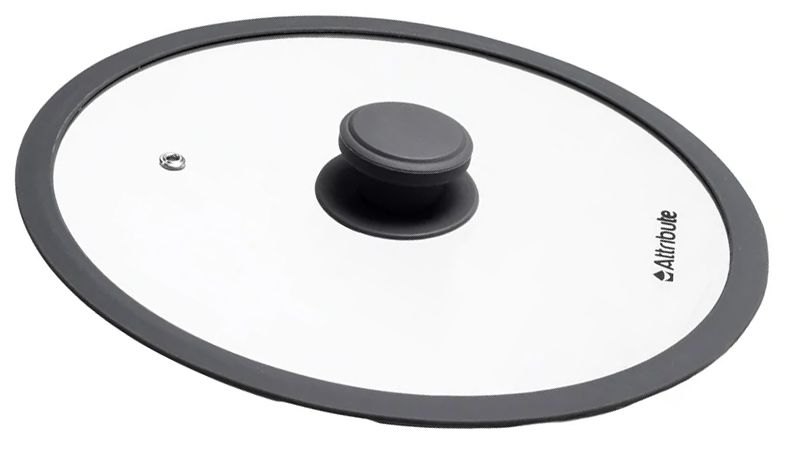 Крышка стекло 26см, плоская, силиконовый обод и ручка, пароотвод "Attribute "NOVA" (6)