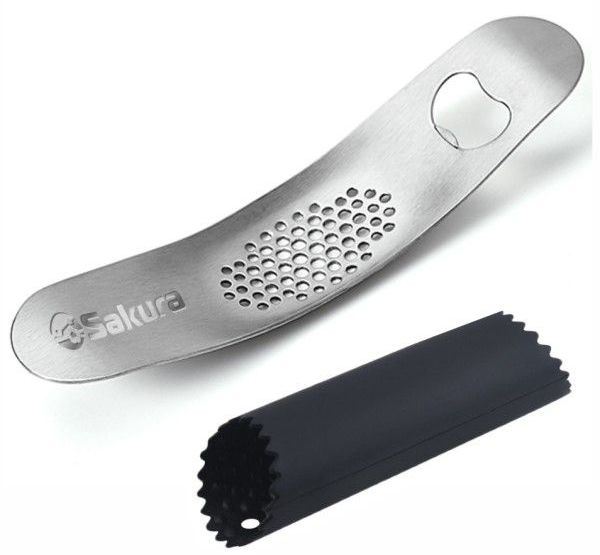 Пресс для чеснока (чеснокодавка-открывашка) нерж. 19*4*2см, 3в1, силикон ролик для очистки чеснока